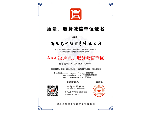 AAA級質(zhì)量、服務(wù)誠信單位認證是企業(yè)在質(zhì)量、服務(wù)和誠信方面的最高認可,對企業(yè)具有重要···